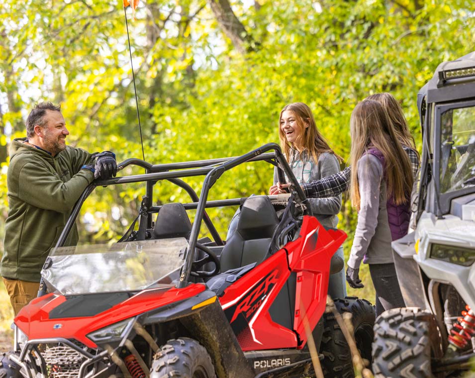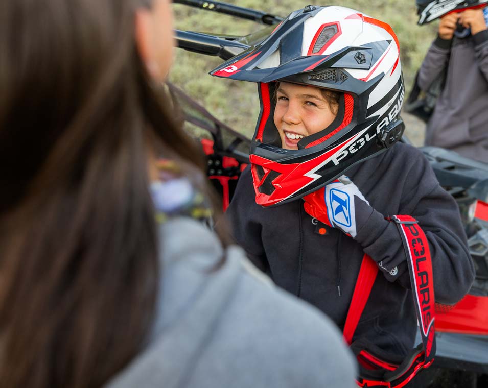 Enjoy peace of mind knowing the RZR comes with industry-leading safety features including a pin code start, adjustable speed limiter, geofencing, safety nets, industry-exclusive safety kit, and helmet aware technology.